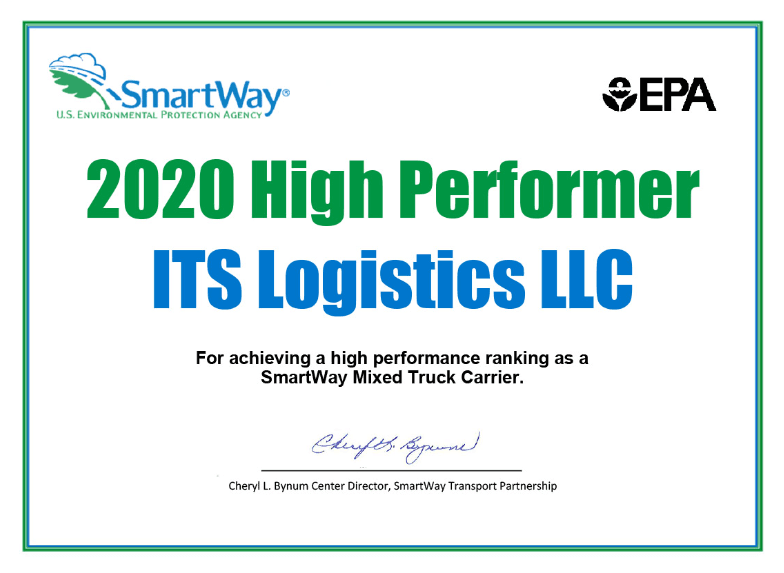 August 26, 2020 — Today the U.S. EPA SmartWay® Transport Program announced that ITS Logistics was recognized as a U.S. EPA 2020 SmartWay High Performer.