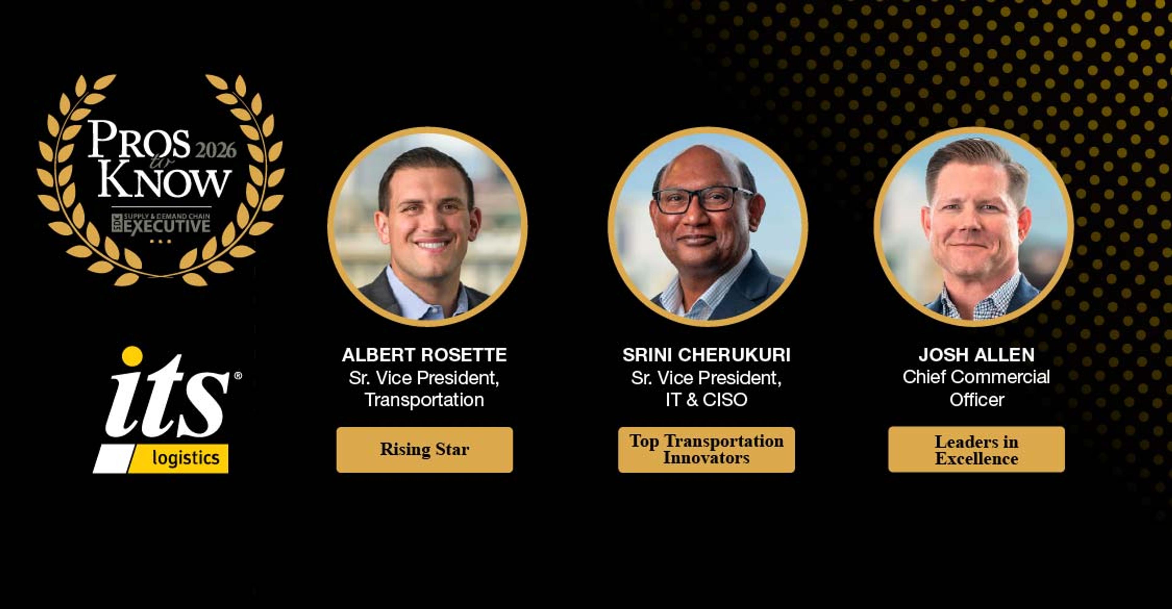 RENO, NV.: MARCH 17, 2026 – Today, Supply & Demand Chain Executive has recognized multiple members of the ITS Logistics team as winners in this year’s Pros to Know award lineup, which acknowledges outstanding executives whose accomplishments offer a roadmap for other leaders looking to leverage supply chain as their competitive advantage.